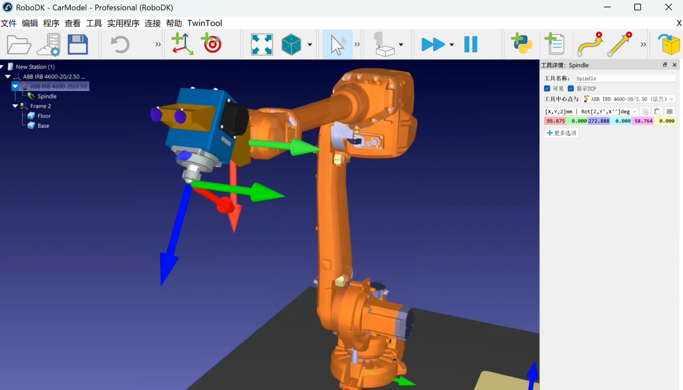 您可以为机器人加工夹具创建一个新的坐标系,在菜单栏选择:程序→添加参考坐标系,可为加工夹具创建新坐标系。